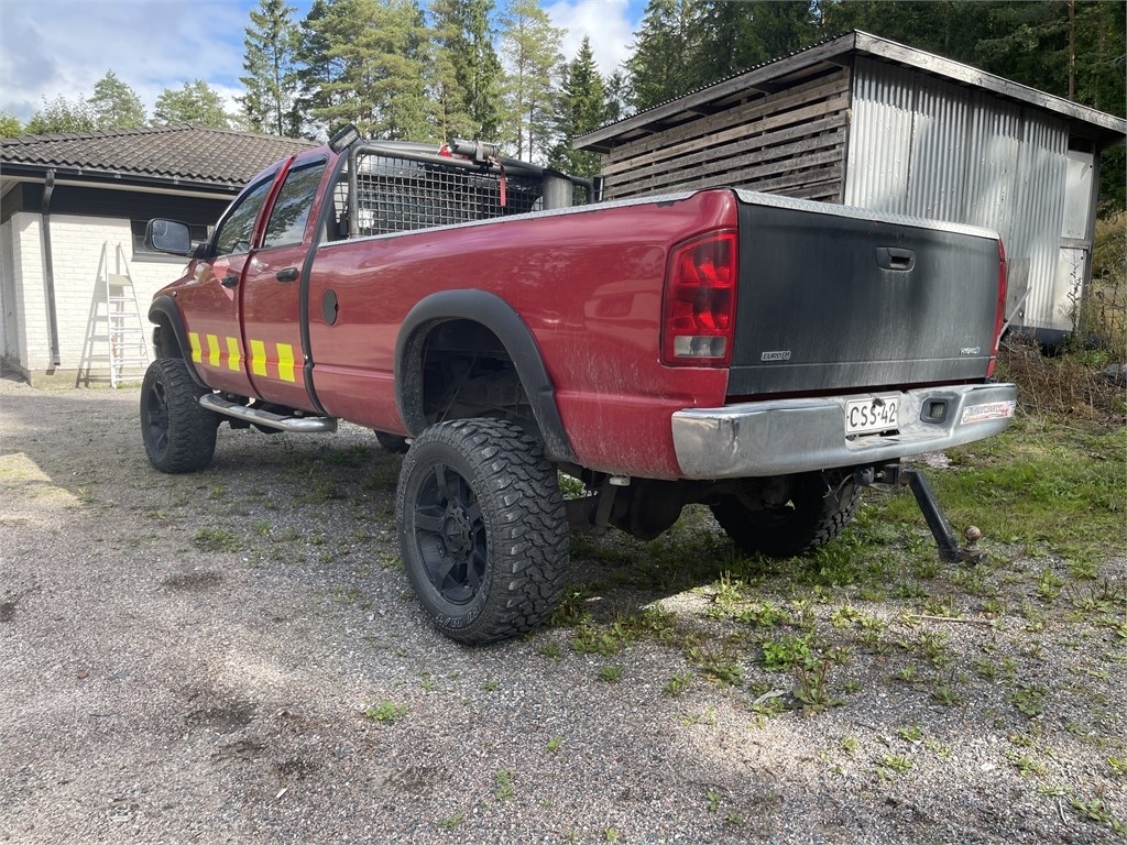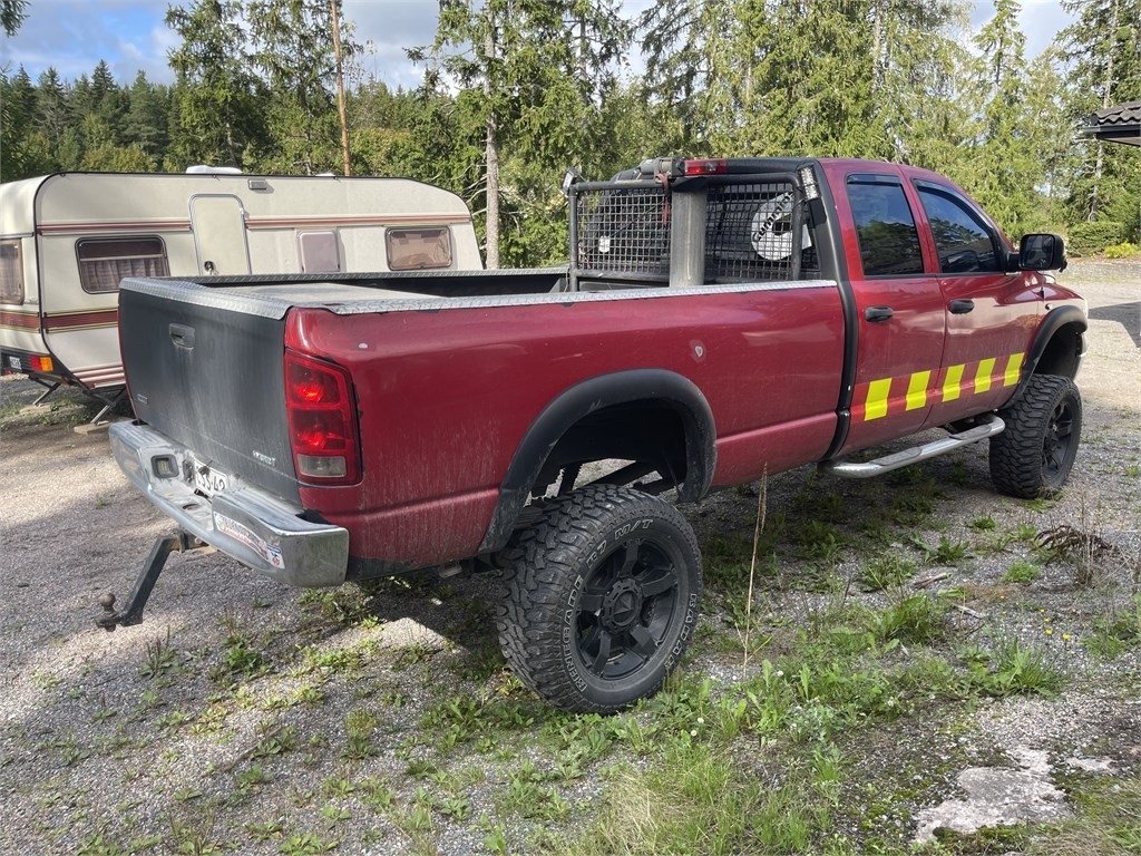 Myynnissä Dodge Ram 2500 rajaton kuorma-auto. Autossa 5,9L 24-venttiilinen moottori, korotus, uudet renkaat, pystyputki sekä Bullydog-ohjelmointi. Vaihdelaatikko ja perät on tehty, ja auto on varusteltu työkalulaatikolla, lisävaloilla (mm. lisäpitkät), 6-paikkaisella nahkasisustalla sekä ilmastoinnilla.