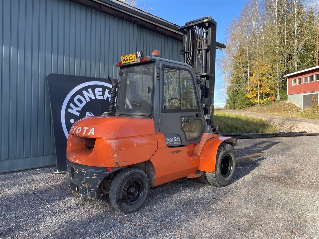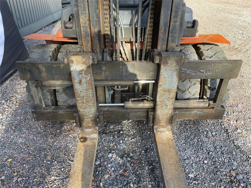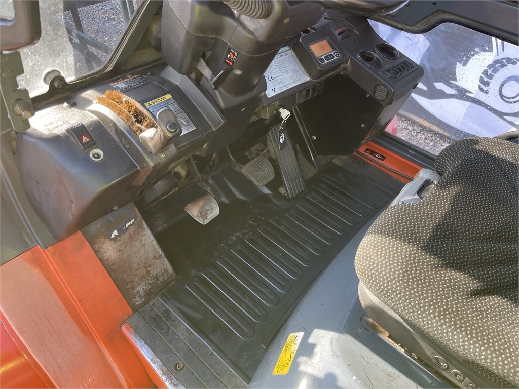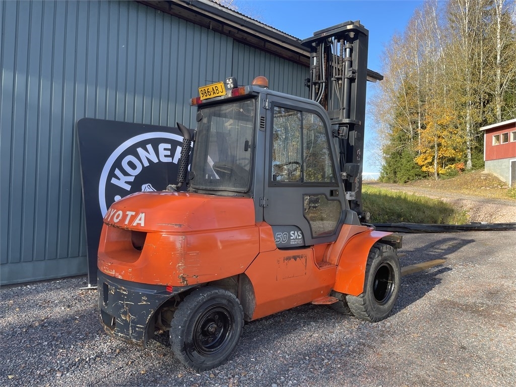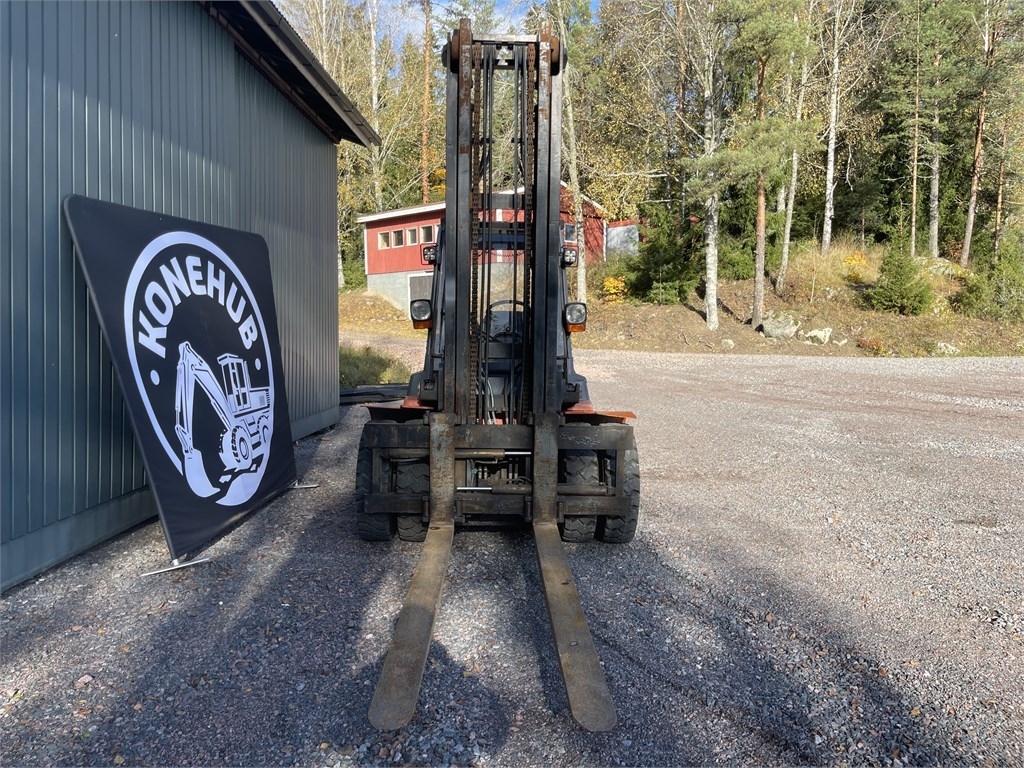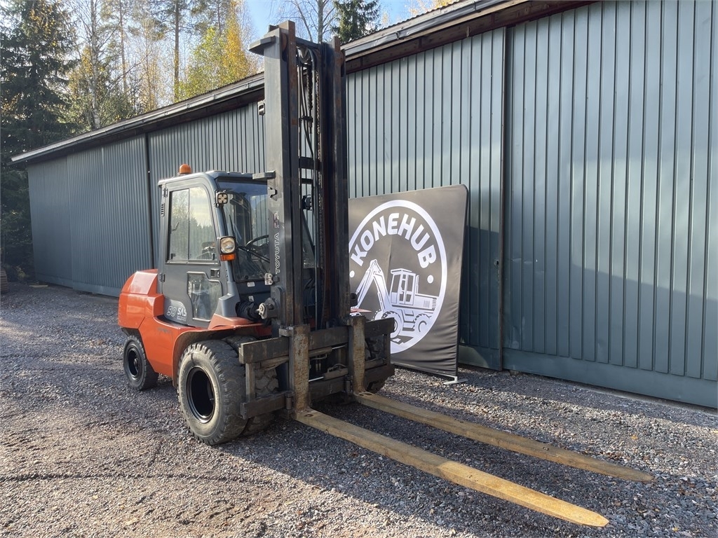 Myynnissä järeä diesel trukki pitkillä piikeillä moneen hommaan. Toyota 42-7FDA50. Vuosimalli: 2011. Käyttötunnit: 12642. Nostokyky: 4500kg. Nostokorkeus: 3500mm. Nimellinen nostokyky: 5000kg. Haarukoiden levitys, kavennus ja sivusiirto. Akut juuri vaihdettu.